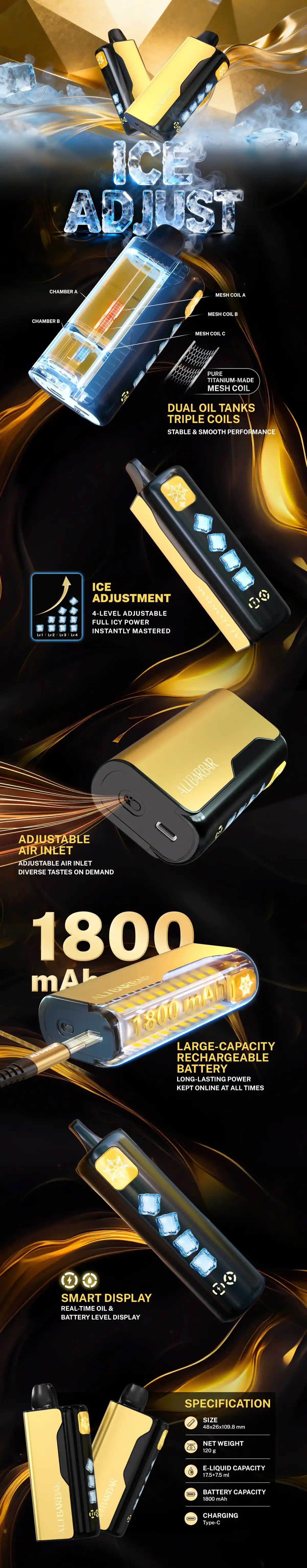LCD Screen (Battery/E-liquid/Ice Level) |